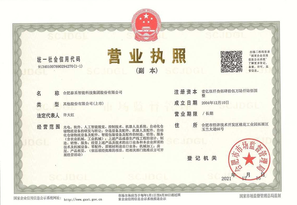 合肥泰禾智能科技集团股份有限公司(简称泰禾智能)是一家专业提供AI视觉识别成套智能化装备和服务的单项冠军示范企业。主要产品有农副食品分选、果蔬分选、矿石分选、再生资源分选、包装机,产品遍布全球100+国家和地区。